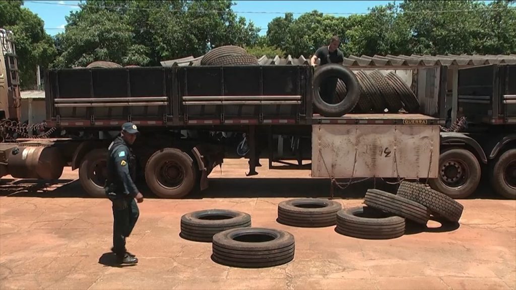 A apreensão ocorreu durante uma abordagem do bloqueio policial para fiscalização, na região de Ponta Porã (MS), cidade que faz fronteira com Pedro Juan Caballero, no Paraguai. Os pneus, adquiridos no Paraguai e sem a documentação de regularidade fiscal, estavam no compartimento de carga dos veículos.