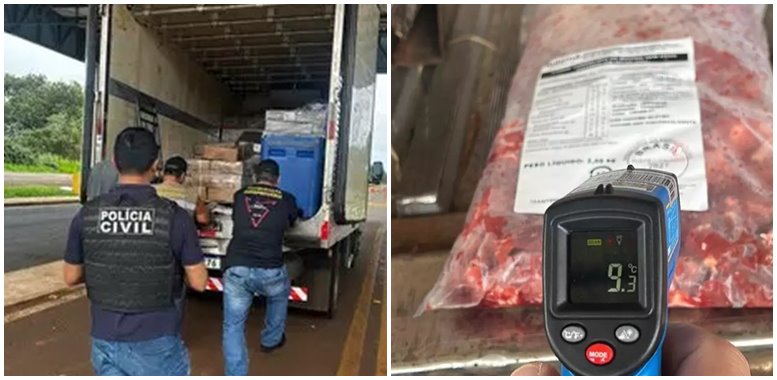 Segundo os fiscais, a carga apresentava irregularidades sanitárias. As carnes deveriam estar armazenadas a uma temperatura mínima de -12°C, conforme normas técnicas, mas estavam sendo transportadas a cerca de 7°C. O sistema de refrigeração do veículo estava desligado.
