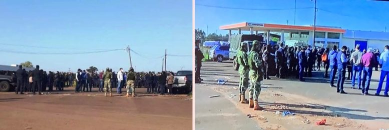 Logo pela manhã policiais conversaram com as pessoas e disseram que não iriam permitir que acesso aos dois locais fosse impedido. Entre os manifestantes estão cerca de 700 trabalhadores que foram demitidos nesta semana do Grupo Maxi que fechou três lojas que mantinha em Pedro Juan Caballero e todos foram demitidos.