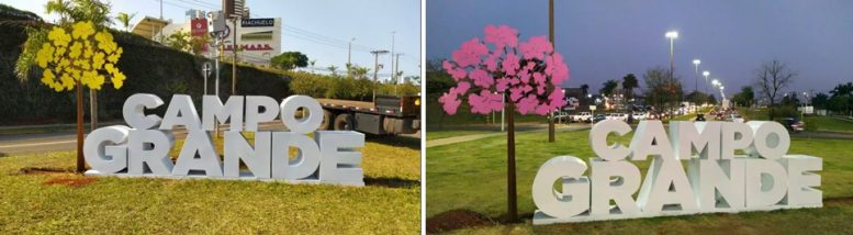 Como neste ano não teremos comemorações cívicas pelos 121 de Campo Grande devido à pandemia do novo coronavírus (Covid-19), a Prefeitura resolveu inovar e instalou letreiros e réplicas de ipês em celebração ao aniversário da cidade no canteiro central da Avenida Afonso Pena em frente ao Shopping Campo Grande, na rotatória da Avenida Gury Marques, na Praça Ary Coelho e na Avenida Duque de Caxias.