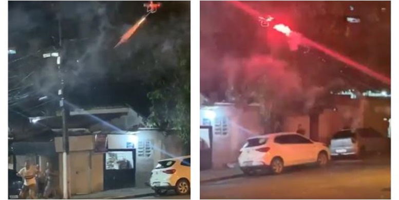 Incomodado com o som alto, ele alçou voo em um drone cheio de bombas para acabar com a movimentação. Os tiros foram disparados para todo lado e os vizinhos com medo saíram correndo. No vídeo, é possível ver o drone no ar e as bombas sendo lançadas.