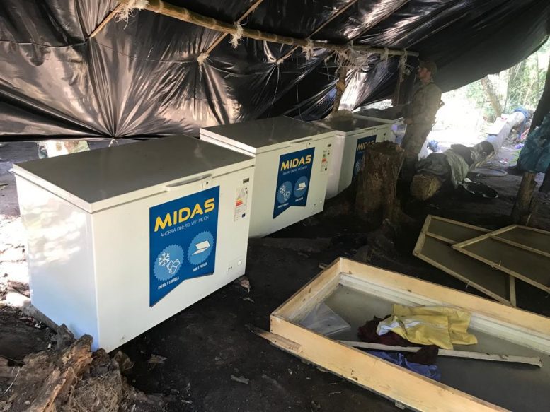 Ainda no local, eles apreenderam e destruíram nove frízeres que se encontravam em nove acampamentos precários, 15 macacos hidráulicos, 15 peneiras, prensas de metal, guilhotina, querosene industrial, um gerador de energia da marca Dahongying e uma máquina forrageira, que, por ordem do promotor de Justiça, foram incinerados.