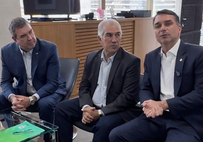 Em vídeo gravado ao lado do governador Eduardo Riedel (PP), do ex-governador e pré-candidato ao Senado Reinaldo Azambuja, do presidente nacional do PL, Valdemar Costa Neto, e do senador Rogério Marinho, Flávio elogiou o que classificou como avanços promovidos pela direita no comando do Estado.