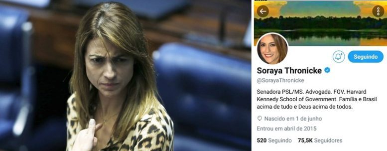 A traição da senadora Soraya Thronicke (PSL/MS) ao presidente da República Jair Messias Bolsonaro (sem partido) continua trazendo prejuízos para a imagem pública da parlamentar sul-mato-grossense. De acordo com o site MS em Brasília, um perfil na rede social Twitter, em nome de Gabriel Barberes, acusa Soraya Thronicke de mentir sobre ter estudado na Universidade Harvard, uma das mais prestigiadas universidades dos Estados Unidos e que foi fundada em 1636 na cidade norte-americana de Cambridge, no Condado de Middlesex, Estado de Massachusetts.