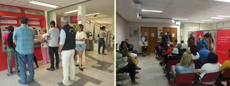 Na terça-feira (03), a equipe atendeu a reclamações de consumidores e flagrou demora excessiva para atendimento de clientes, tanto nos caixas como nas mesas na agência da Rua Marechal Candido Mariano Rondon, com a agravante de que, em mesas, não há registro eletrônico do termino do atendimento, o que é feito manualmente, quando solicitado pela pessoa que se sentiu prejudicada.