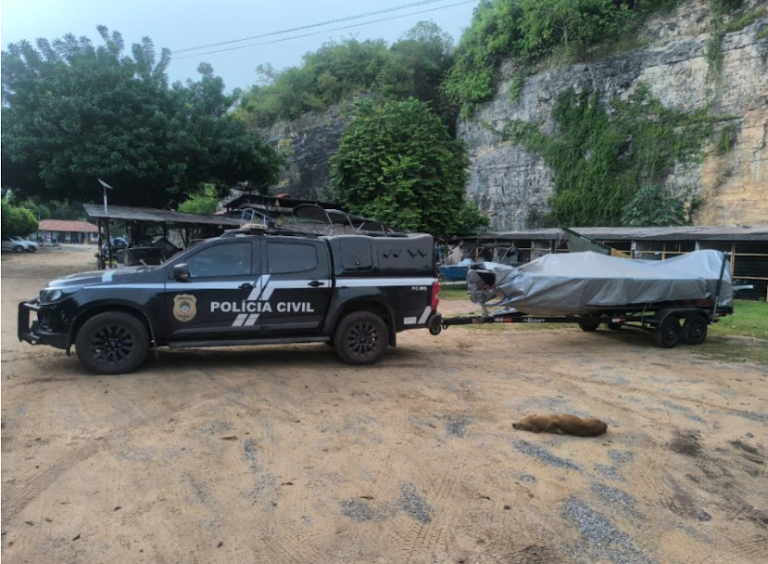 Equipes da Polícia Civil apreenderam uma embarcação avaliada em R$ 400 mil durante a operação Rota Blindada II, deflagrada na manhã desta sexta-feira (17). A ação teve como alvos oito investigados, entre eles o 3º sargento da Polícia Militar Lucas Villegas Campos e o policial penal Antônio Fernando Martins da Silva, ambos já presos anteriormente em outras investigações.