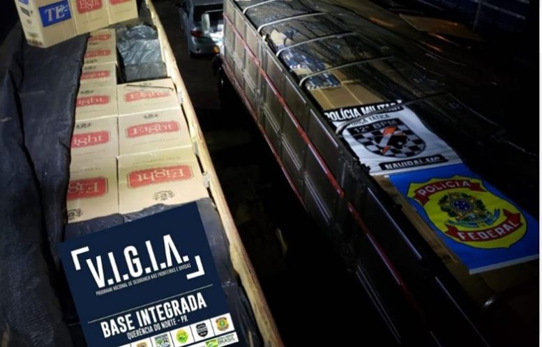 Na noite de ontem (16), a Polícia Federal e a Força Tática da Polícia Militar de Naviraí, em ação conjunta na Operação Hórus – Programa Vigia, apreenderam, na região do Porto Caiuá, município de Naviraí (MS), dois caminhões que transportavam cigarros de origem estrangeira introduzidos no País sem documentação.
