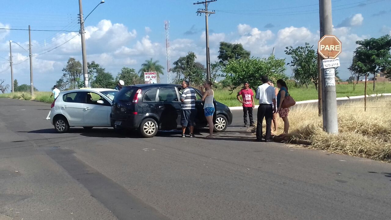 Repare nas fotos; não há qualquer sinalização horizontal no cruzamento e a placa de pare foi fixada no poste.