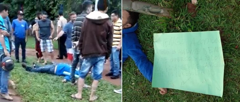 Os autores deixaram um cartaz ao lado do corpo da vítima no momento do ataque com os dizeres: “VENHO A COMUNICAR A TODOS É ASSALTANTE DE MOTO!!! E DE COMÉRCIOS E LADRÕES DE CAMIONETAS…ESSE É O RESULTADO!!!”. Os investigadores do SIG (Setor de Investigações Gerais), coordenados pelo delegado Alcides Bruno Braun, com apoio dos investigadores da Polícia Técnica, realizaram os trabalhos de praxe e recolheram evidências encontradas no local da execução.