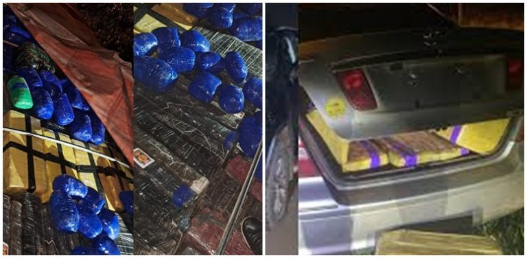 Com o grupo, os agentes encontraram centenas de fardos de maconha embalados e identificados. A frota utilizada pelo narcotráfico incluía dois caminhões-tratores, um caminhão, 14 caminhonetes e dois carros, todos preparados para transportar apenas o motorista e a carga.