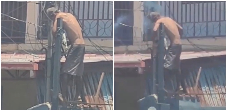 O caso foi registrado em vídeo por um empresário da região. Nas imagens, o suspeito aparece em cima de um muro cortando a fiação elétrica. No momento em que os cabos são rompidos, faíscas saltam e o homem aparenta levar choques, mas continua o furto sem qualquer hesitação, ignorando o risco de morte.
